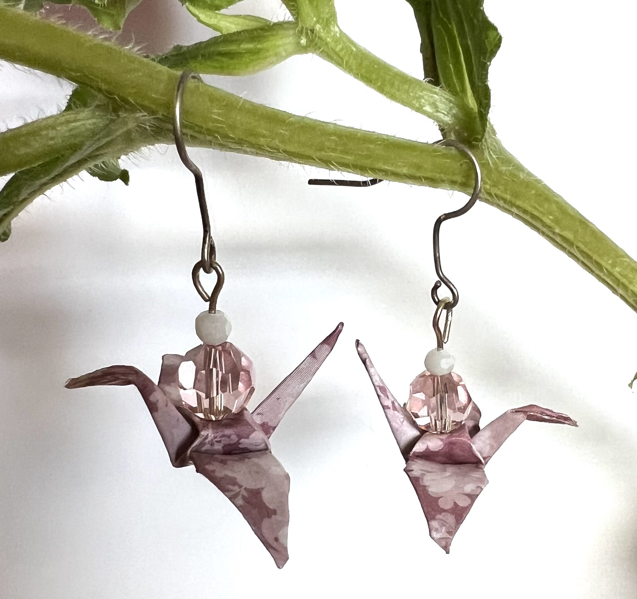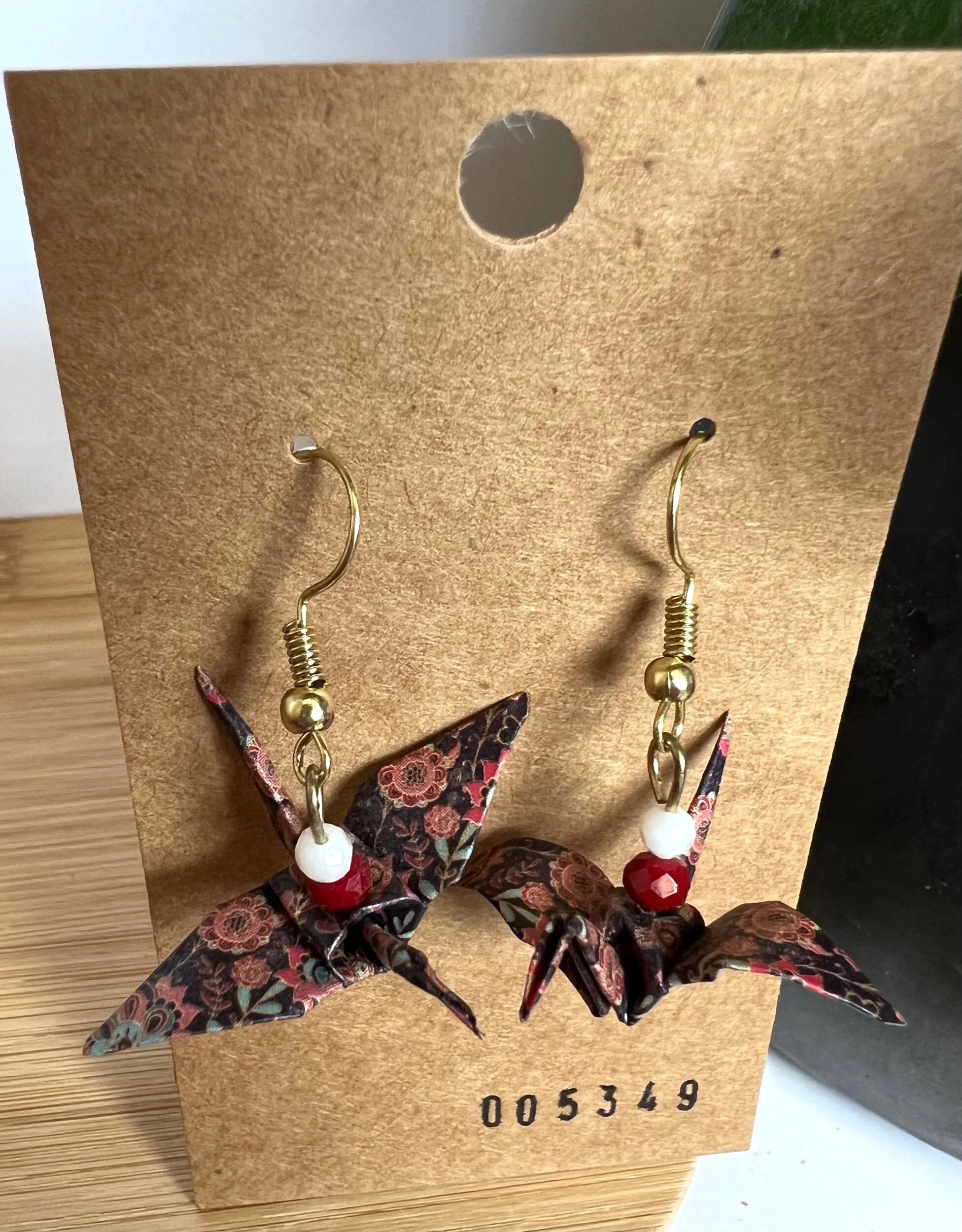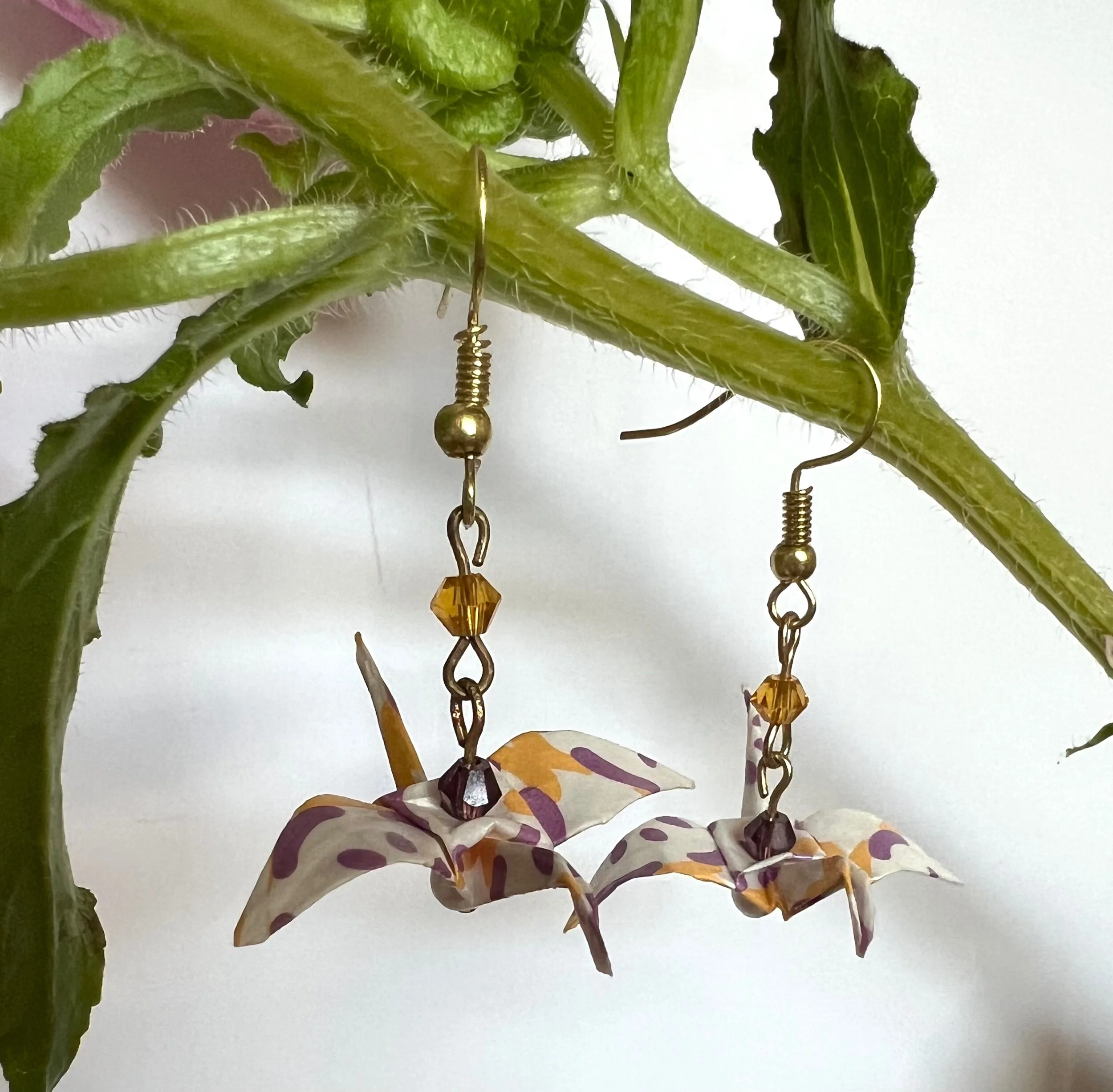 Each pair of earrings is light and delicate making them easy to wear, yet striking and unique. This design is based on the traditional origami crane, with each pair made of beautiful paper (we use recycled materials whenever possible). No two sets are quite alike.