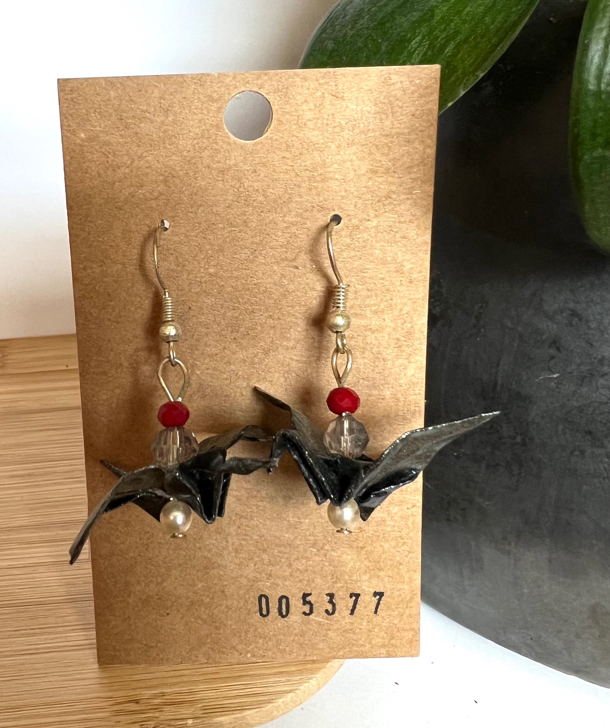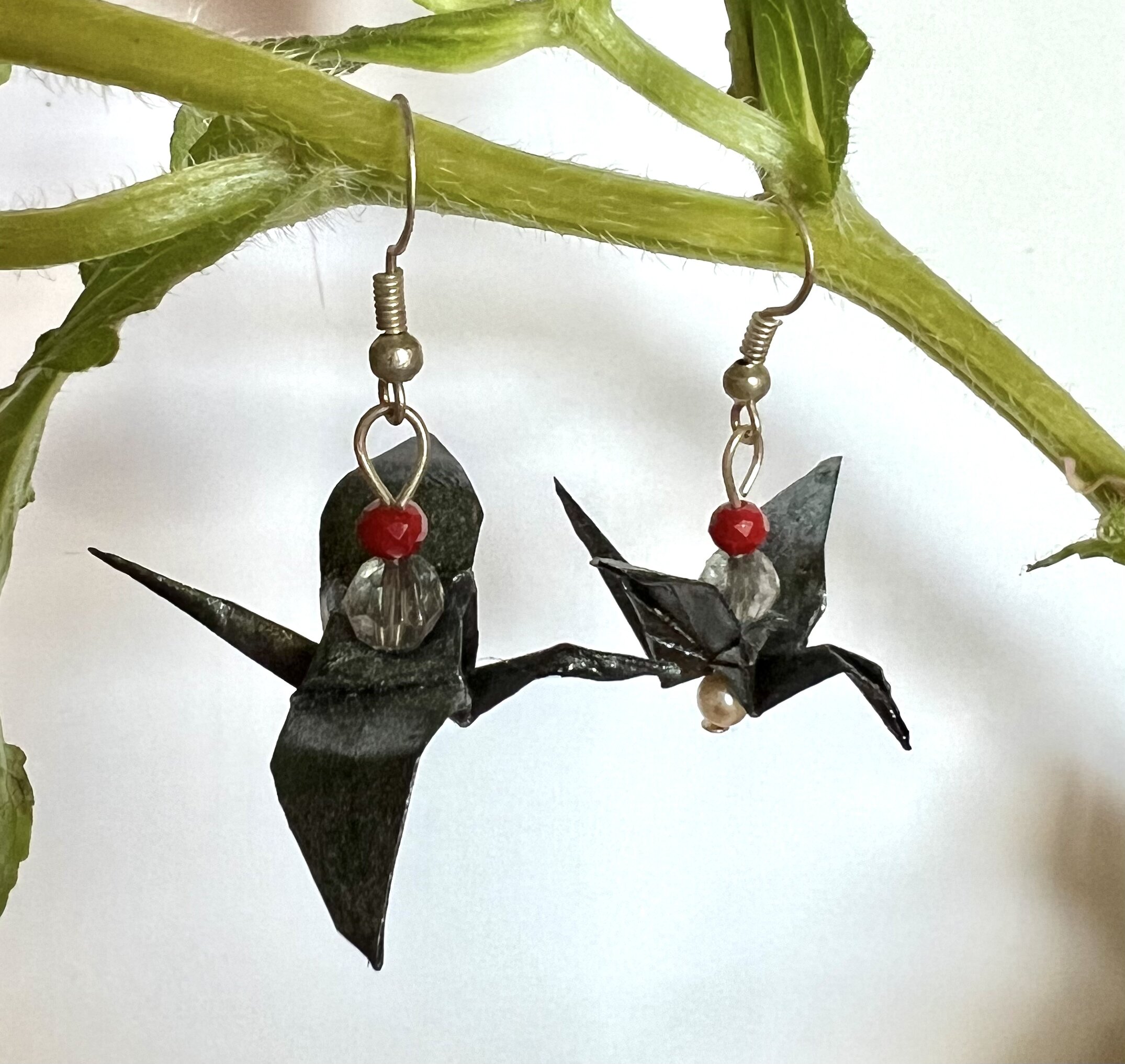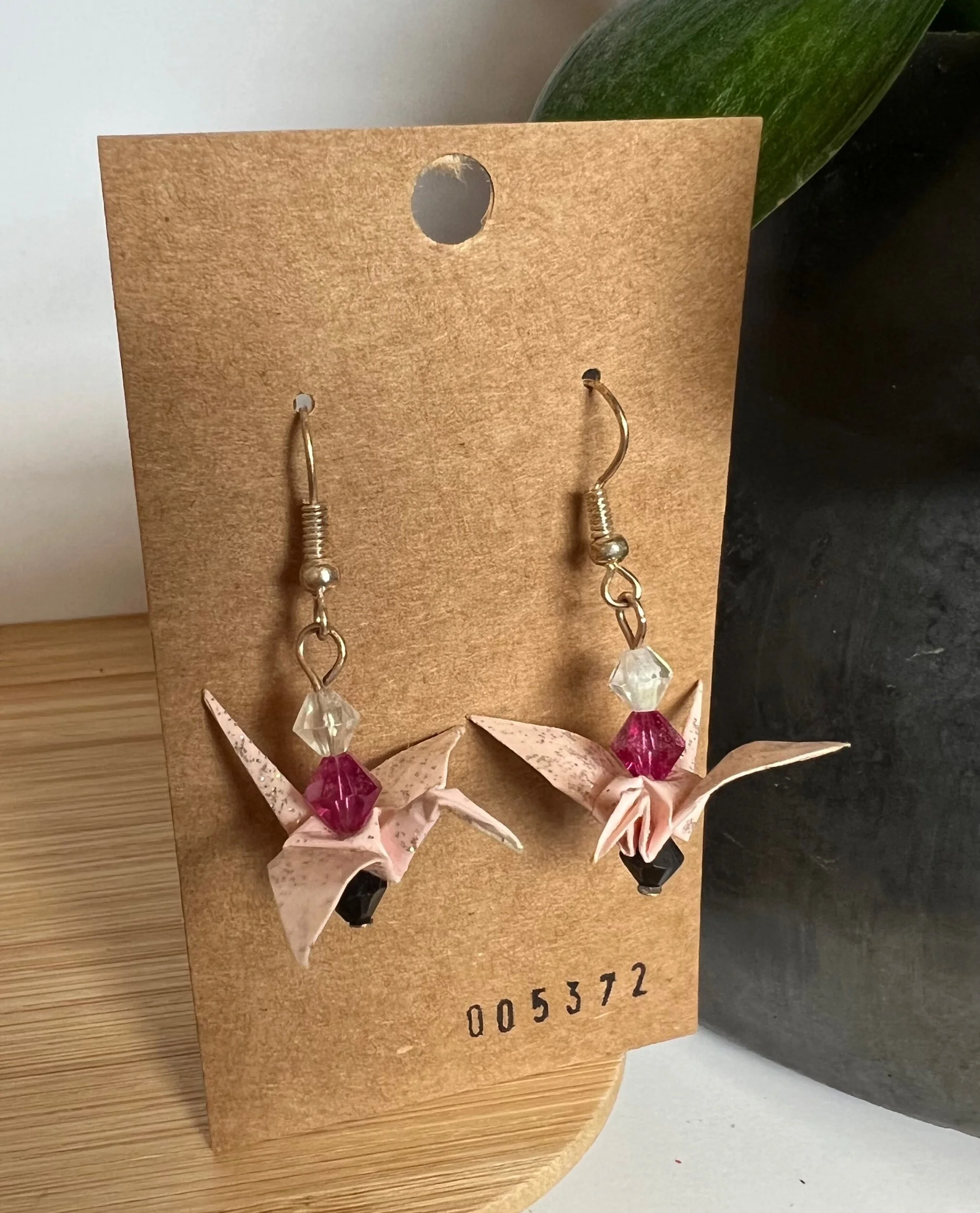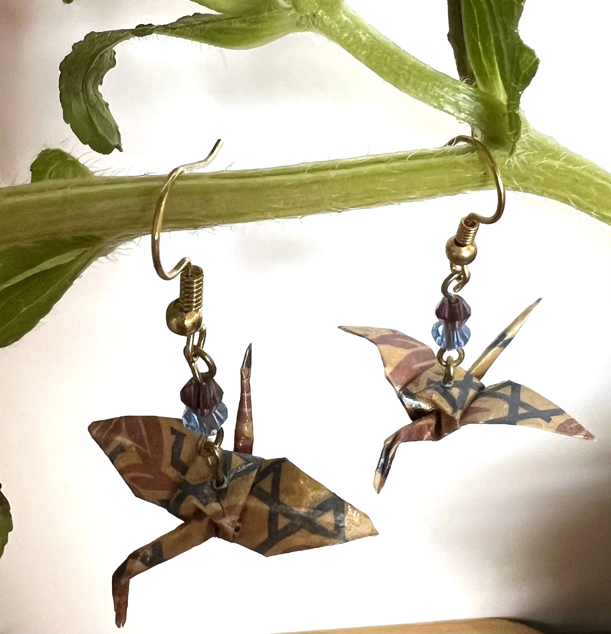 Each pair of earrings is light and delicate making them easy to wear, yet striking and unique. This design is based on the traditional origami crane, with each pair made of beautiful paper (we use recycled materials whenever possible). No two sets are quite alike.