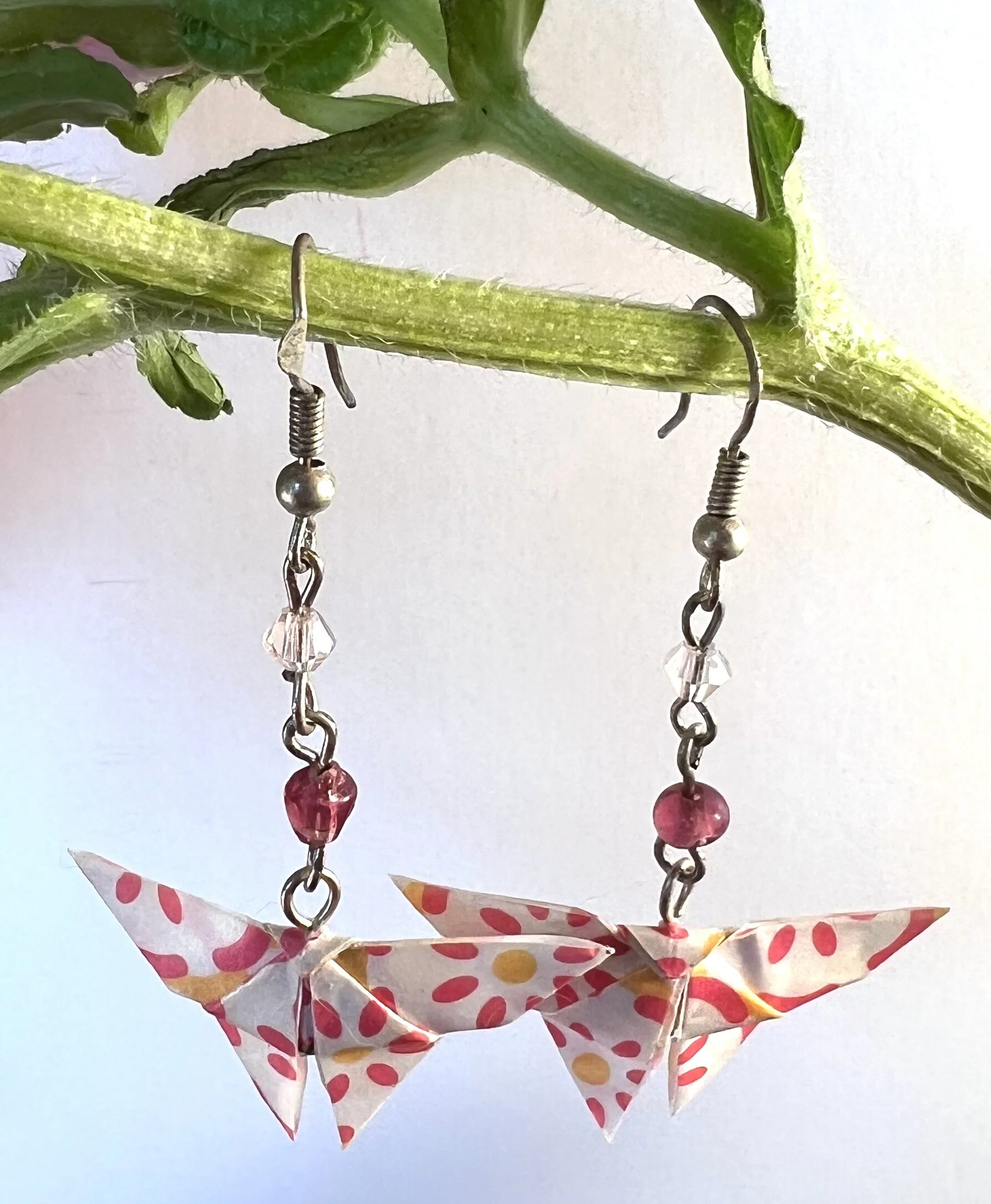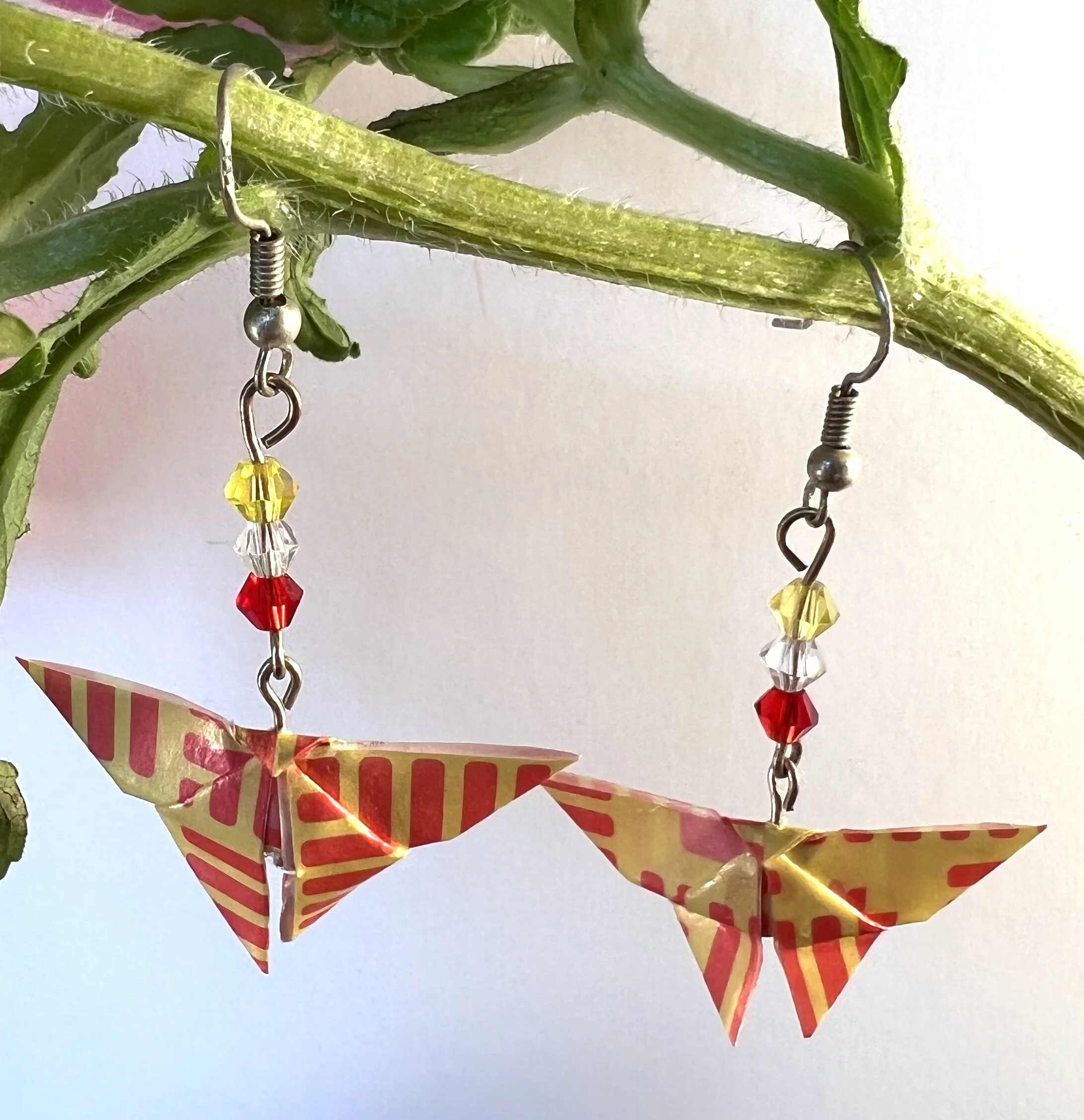 Each pair of earrings is light and delicate making them easy to wear, yet striking and unique. These butterflies are made with beautiful paper (we use recycled materials whenever possible). No two sets are quite alike.
