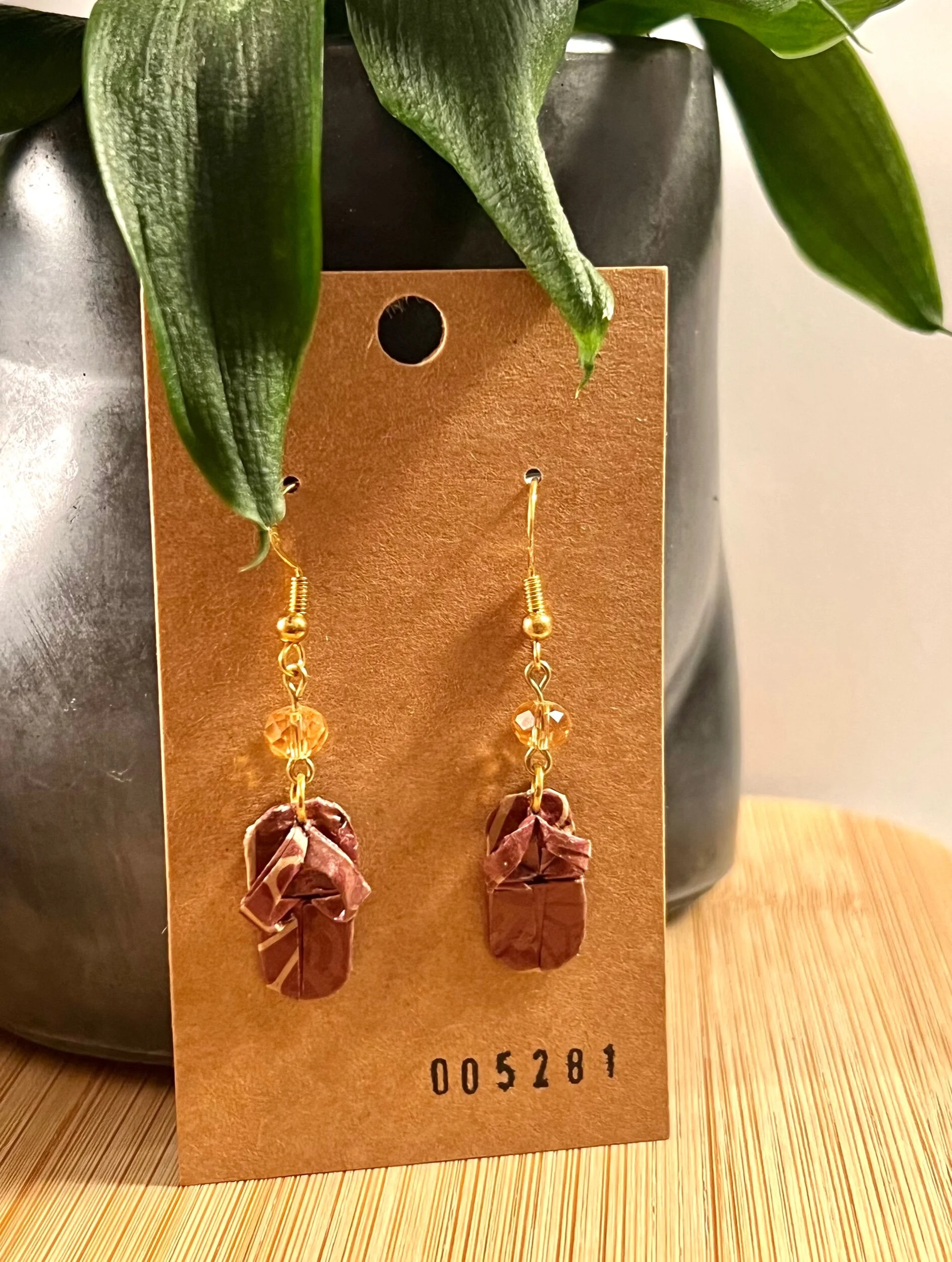 Origami Earrings - Flip-Flops - gold and brown pattern