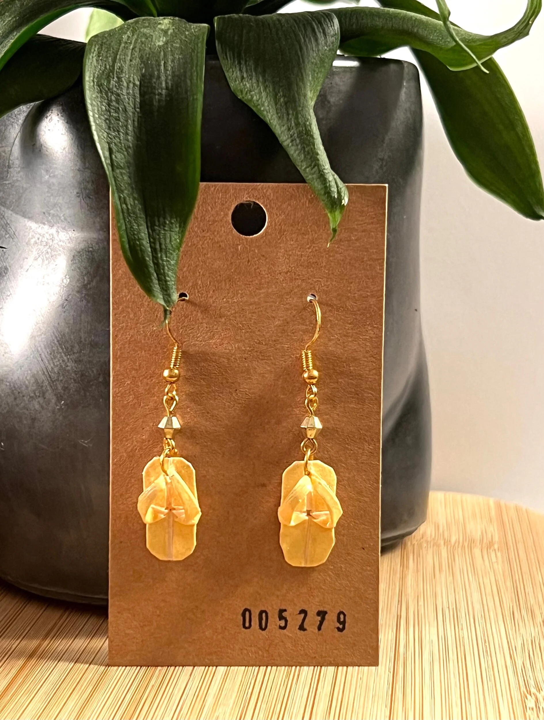 Origami Earrings - Flip-Flops - gold and yellow glitter